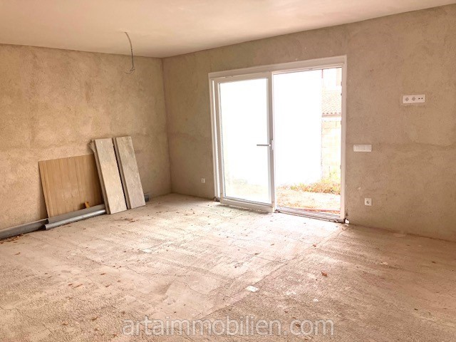 Das Erdgeschoss besteht aus einem Eingangsbereich, einem Wohn-Esszimmer, einer Küche, einer Speisekammer, einer Toilette und einer Terrasse.