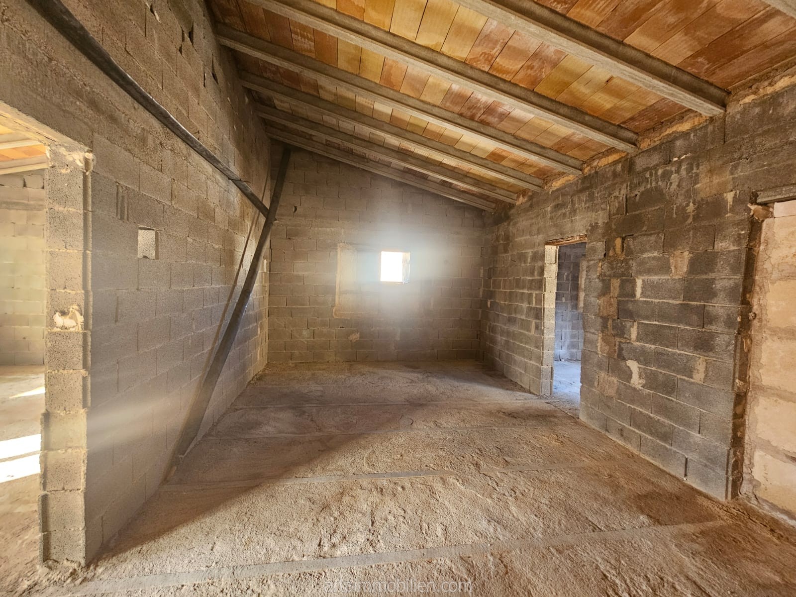 Das Haus besteht im Erdgeschoss aus einem Eingangsbereich, einem geräumigen Wohn-Esszimmer, einer Küche, drei Doppelzimmern, einem Badezimmer, einem verglasten Wohnzimmer und einem Innenhof.