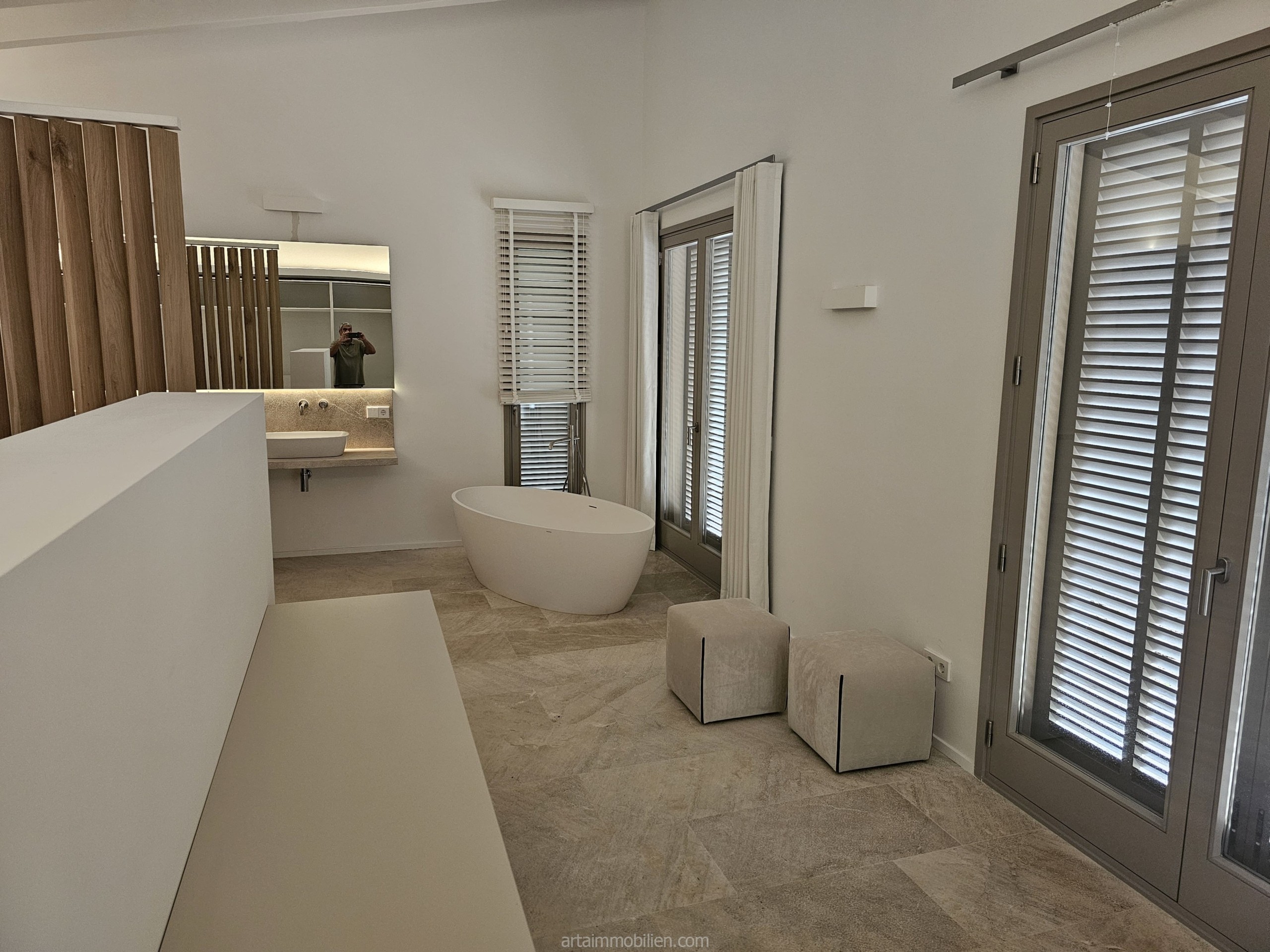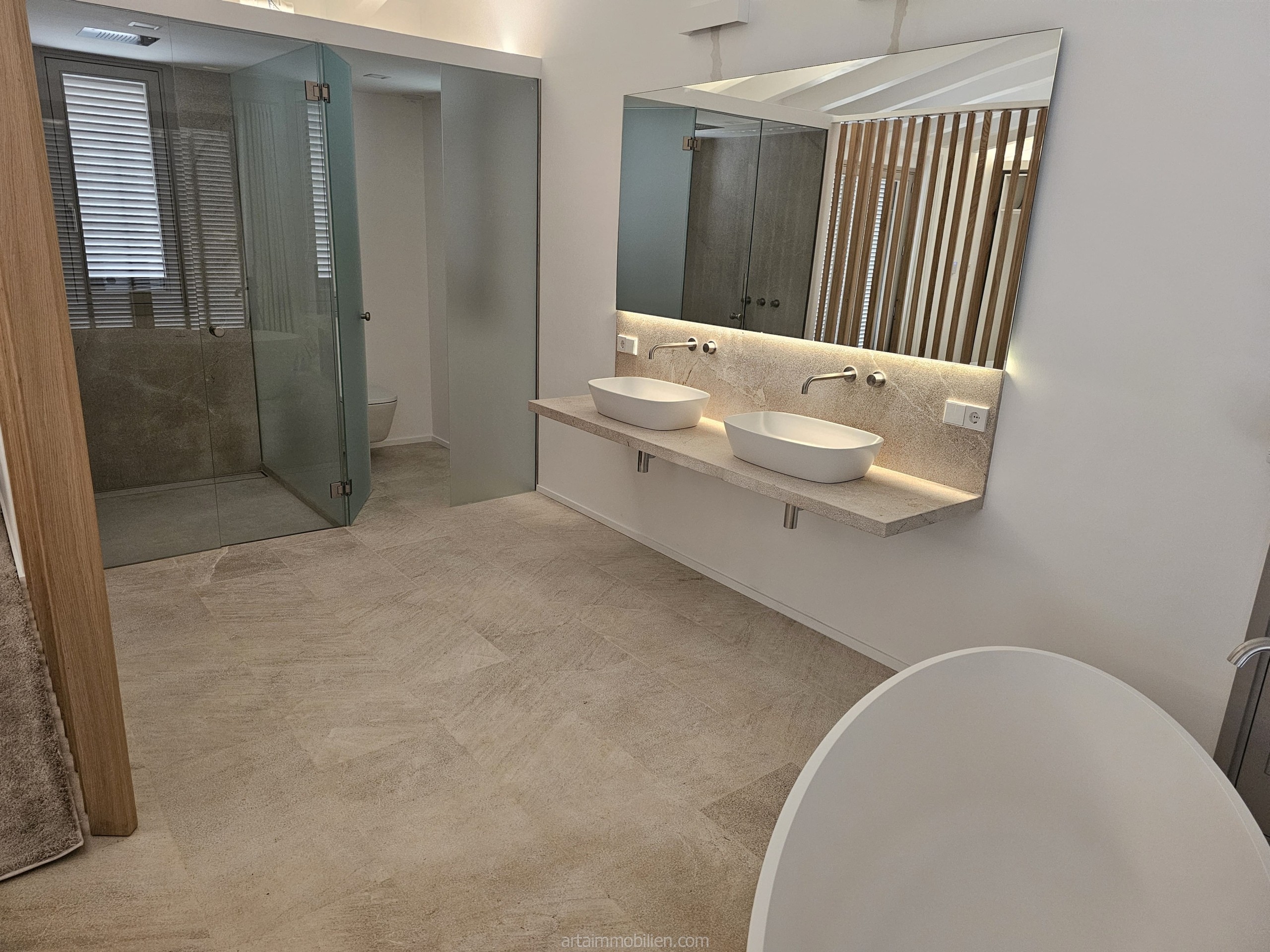 Diese Finca ist ein Neubau zum Erstbezug. Das Haus wurde mit den hochwertigsten Materialien gebaut und mit modernen Elementen und intelligenter Haustechnik ausgestattet, so dass eine luxuriöse und moderne Finca im mediterranen Stil von einem renommierten Architekten entstanden ist.