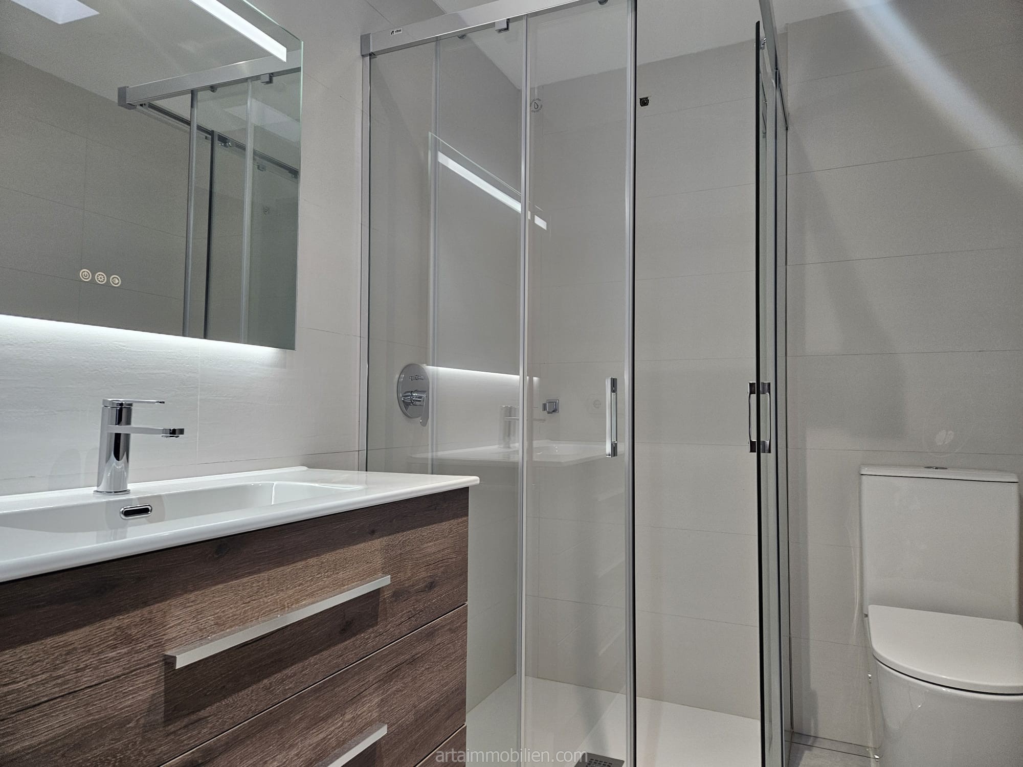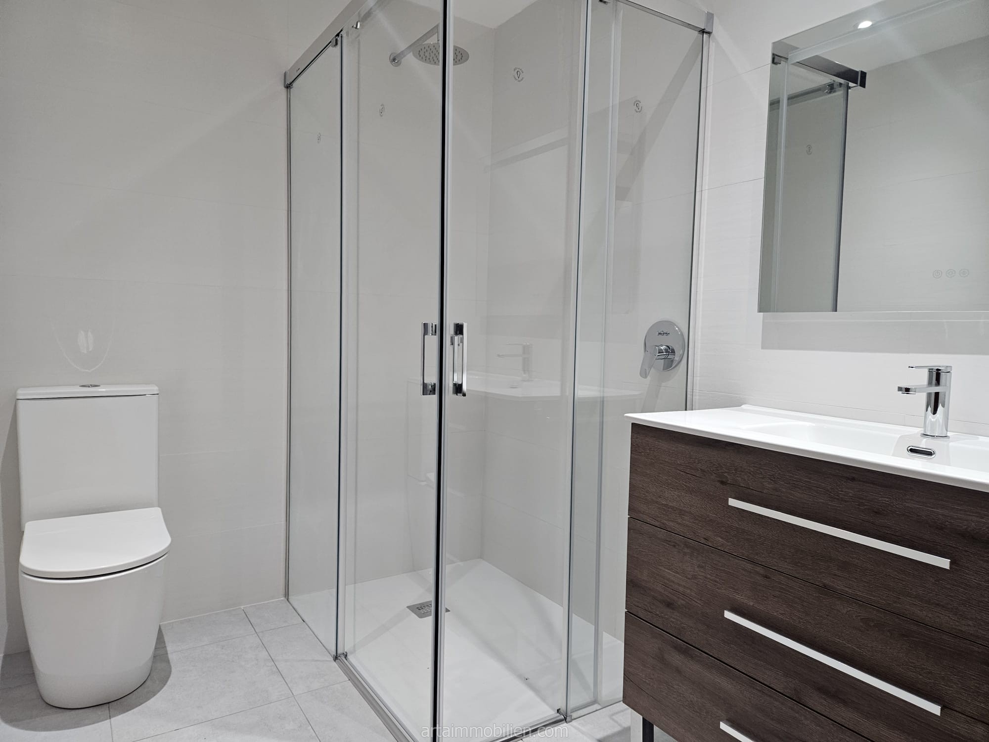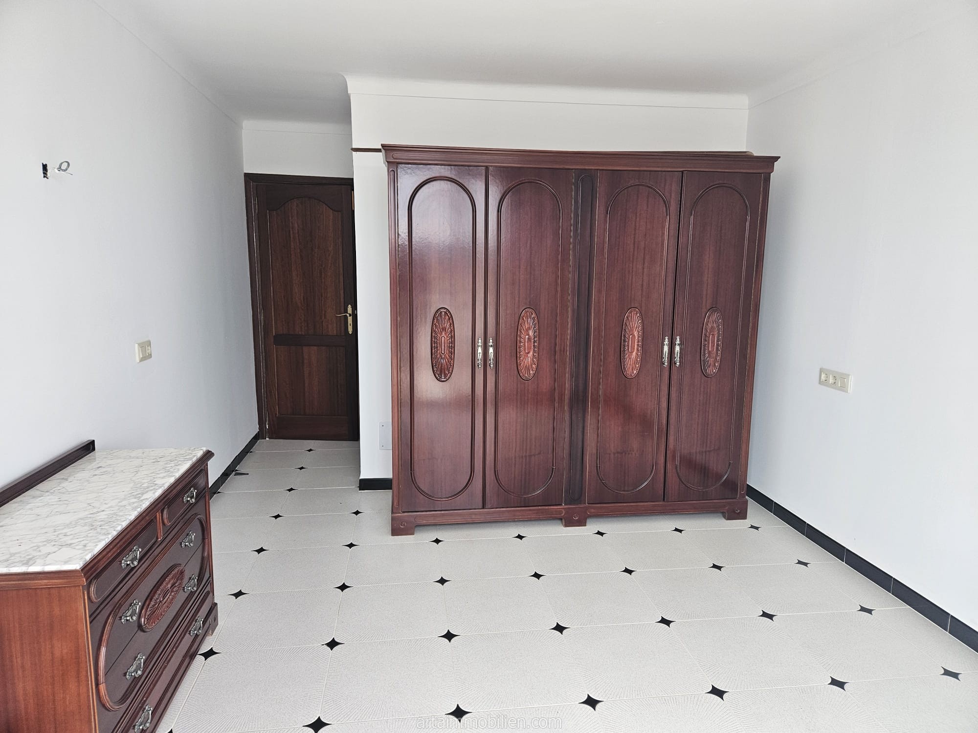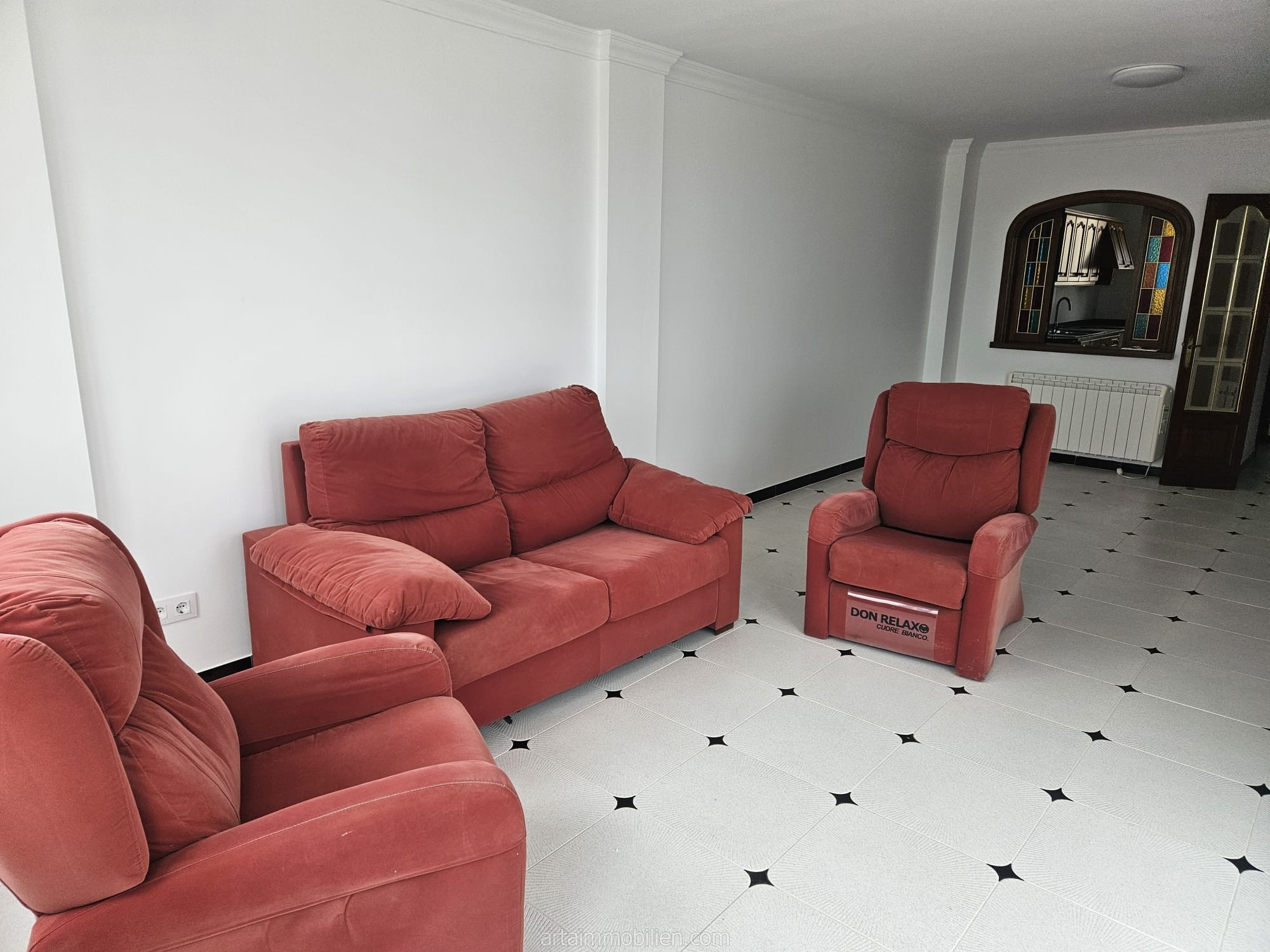 Das Anwesen besteht aus einer Eingangshalle, einem geräumigen Wohn-Esszimmer mit großen Fenstern, die viel natürliches Licht und Zugang zur Terrasse bieten, einer voll ausgestatteten Küche, einer Waschküche, dem Hauptschlafzimmer mit eigenem Bad und Zugang zur Terrasse, zwei Doppelschlafzimmern mit Einbauschränken und einem kompletten Badezimmer mit Dusche. Beide Bäder wurden kürzlich renoviert.