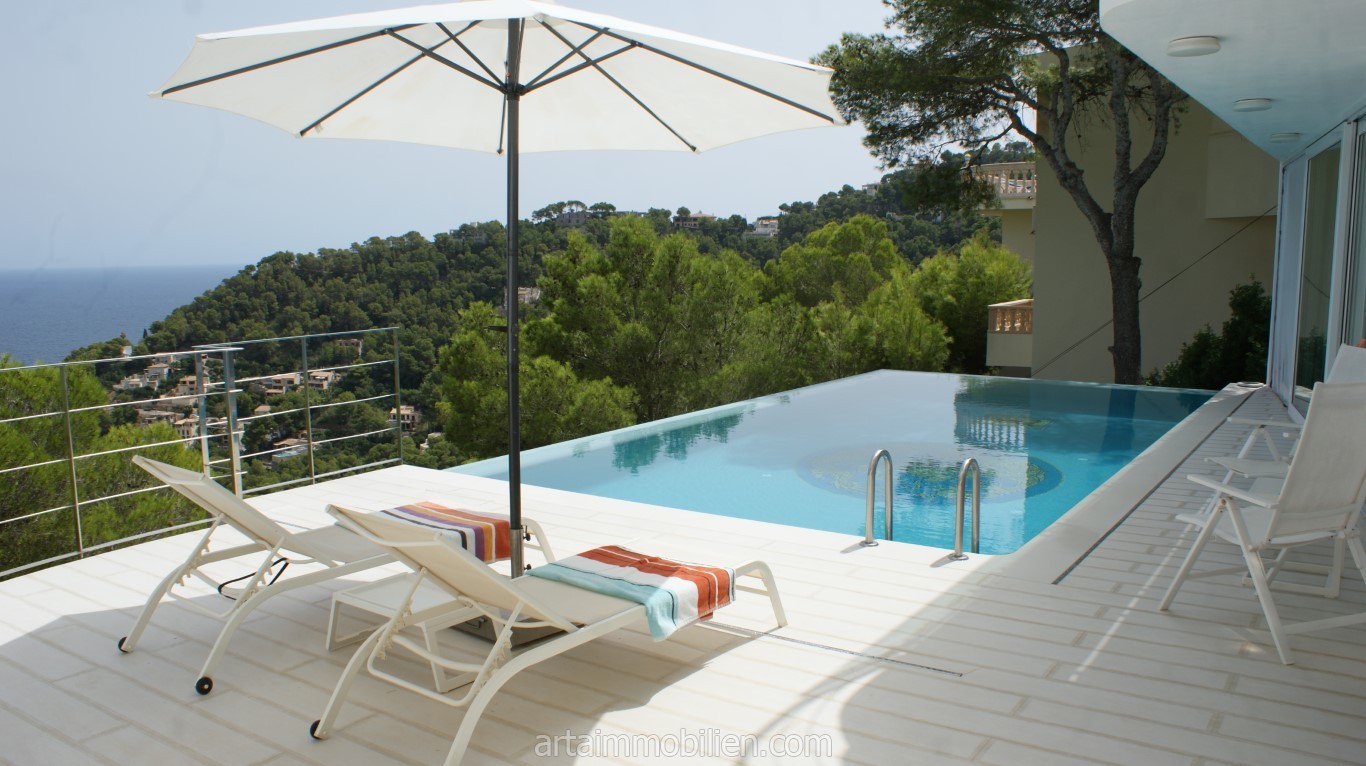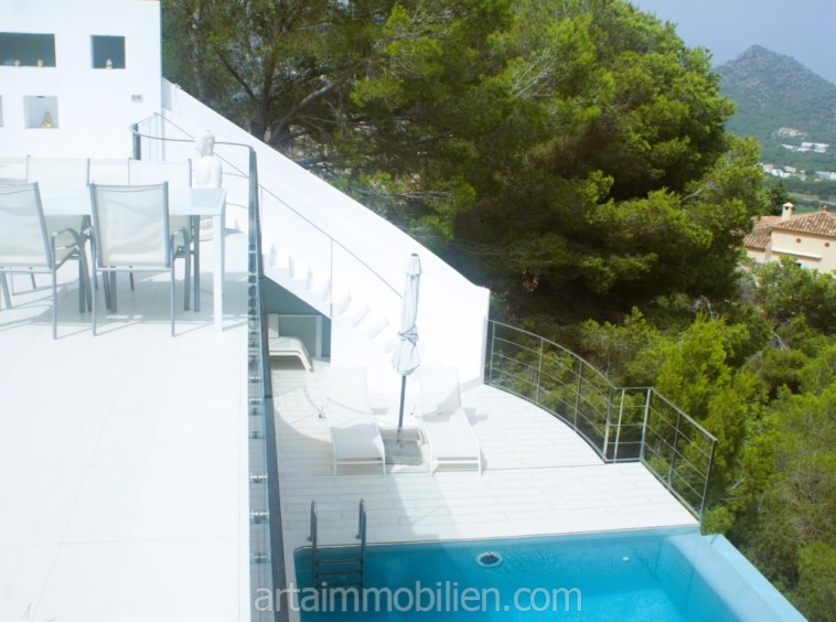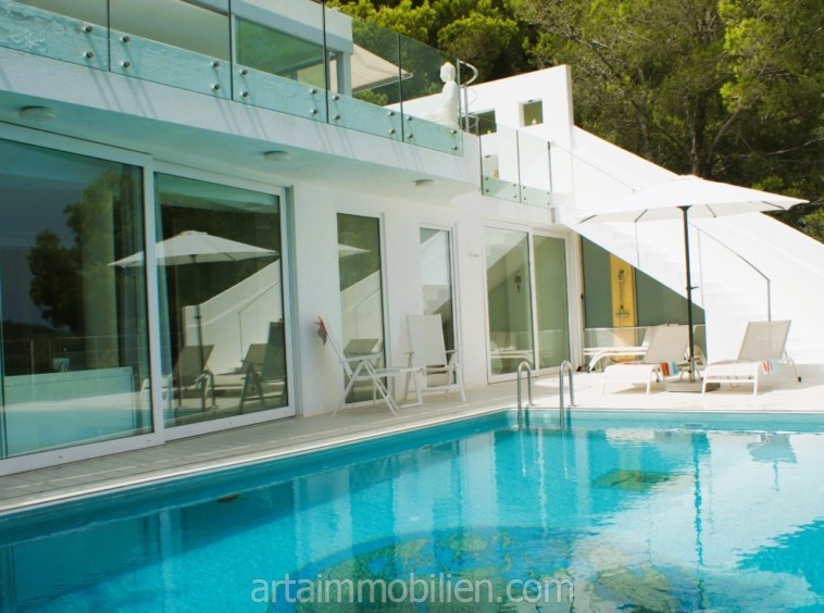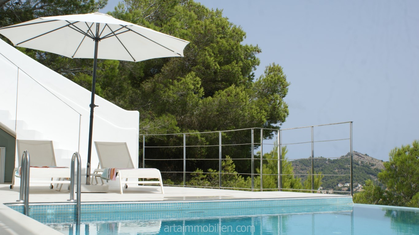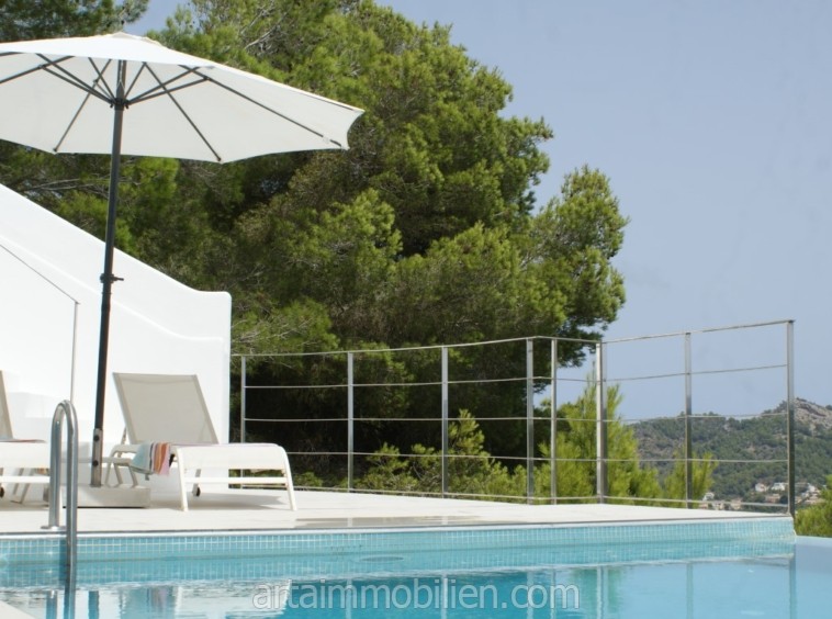 Esta extraordinaria villa de estilo minimalista se puede alquilar en una tranquila y hermosa ladera en Canyamel.