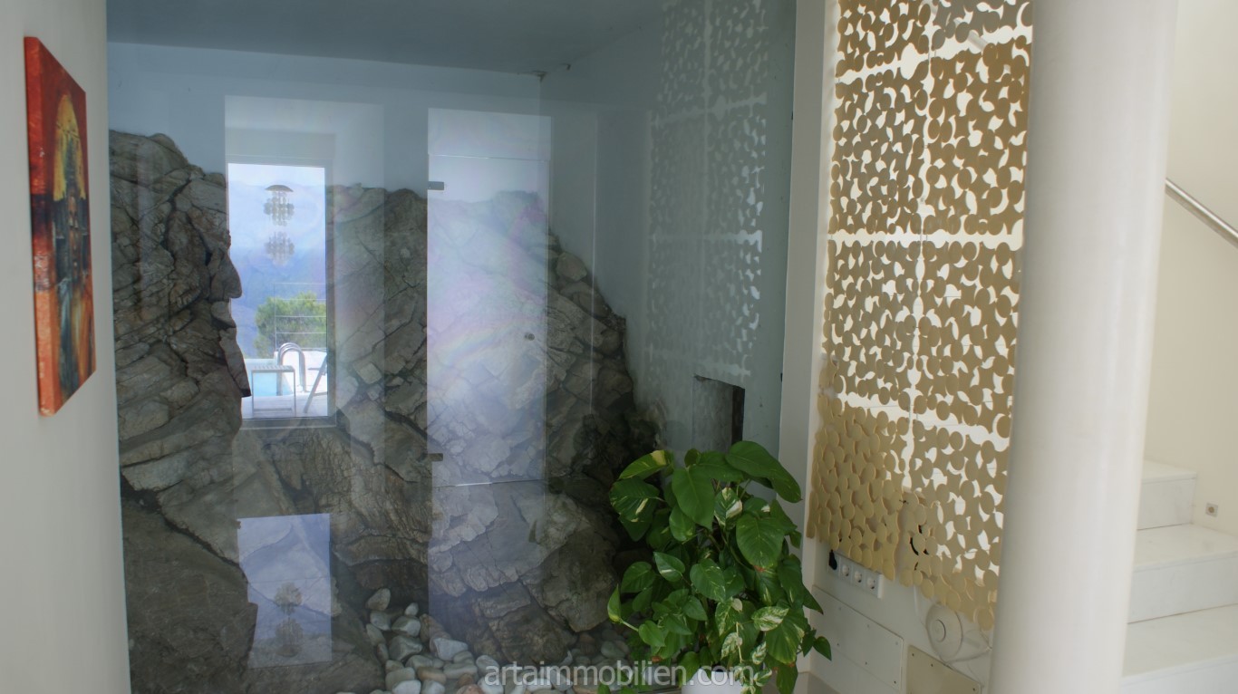 La villa ha sido construida con materiales de alta calidad y acabados de primera clase, lo que garantiza el confort durante todo el año. Las instalaciones incluyen calefacción por suelo radiante con control individual por habitaciones, aire acondicionado en dos dormitorios, ventanas de diseño de Vitrocsa (Suiza), doble acristalamiento, suelos de porcelana, sistema de descalcificación, caldera eléctrica y calentador de agua diésel. Gracias a la conexión a Internet de alta velocidad, podrá mantenerse conectado desde cualquier parte del mundo.