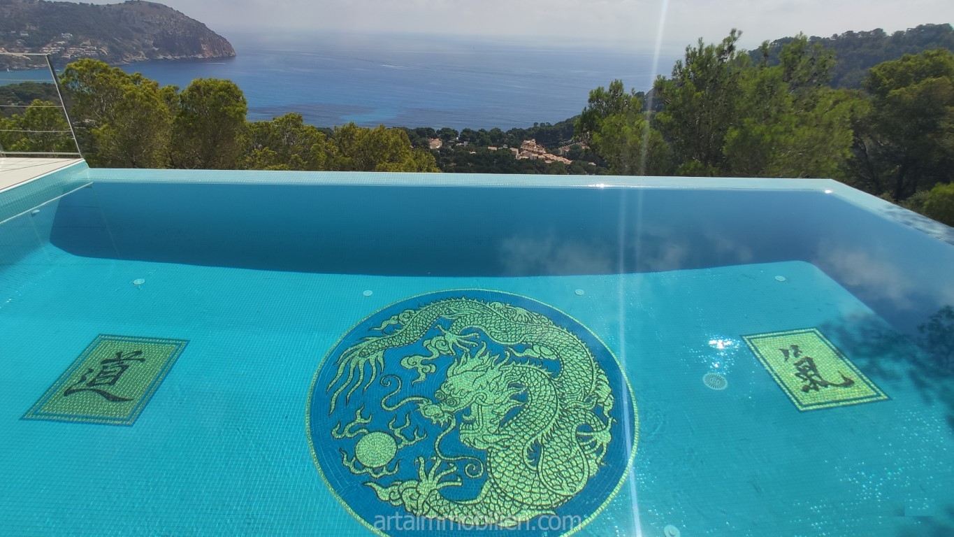 Uno de los aspectos más destacados de esta casa es la impresionante piscina infinita con maravillosas vistas al mar. La propiedad también incluye un garaje cerrado y una plaza de aparcamiento exterior cubierta.