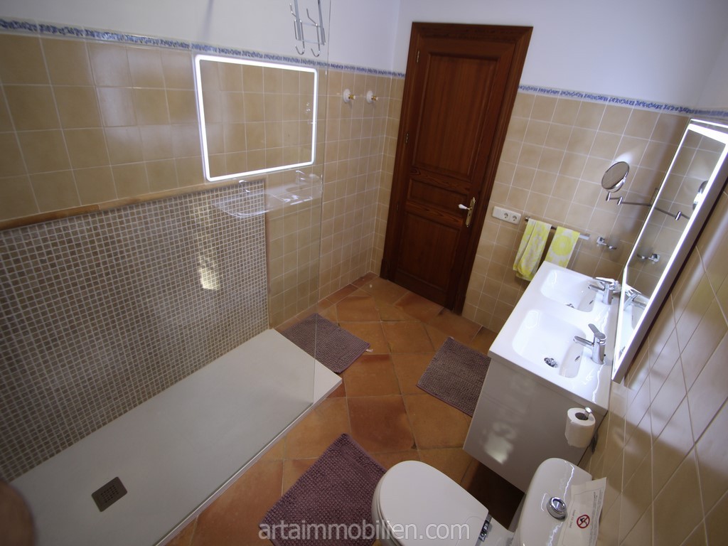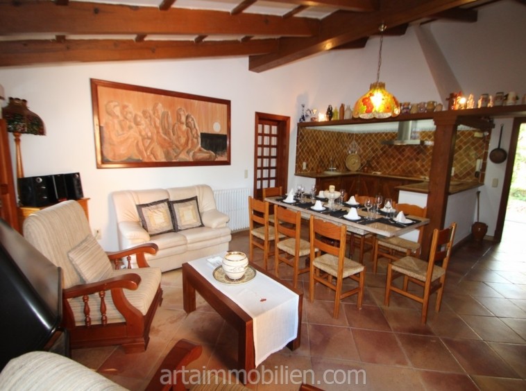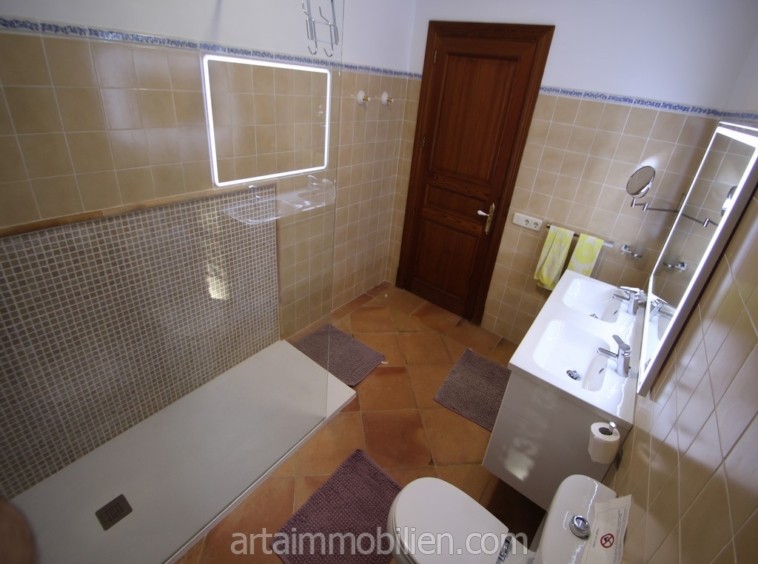 Consta de un hall de entrada, un gran salón con chimenea, una cocina abierta con office y chimenea, un comedor, dos dormitorios con dos camas individuales, dos cuartos de baño completos con plato de ducha y tres dormitorios dobles el cual uno de ellos con vestidor integrado y baño en suite.