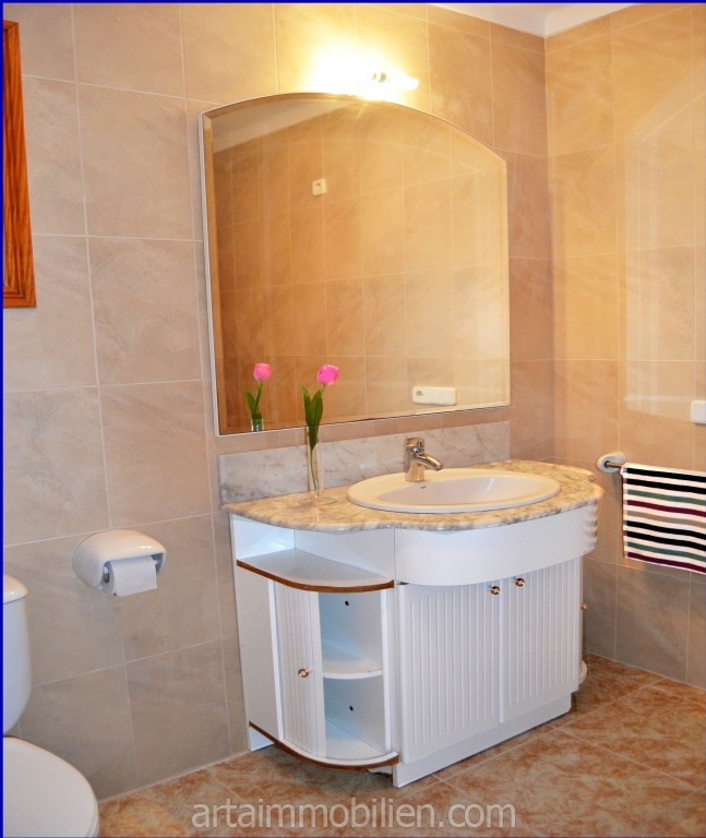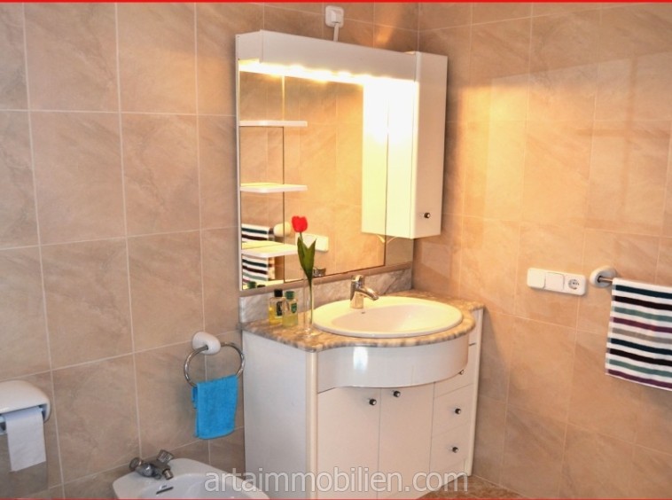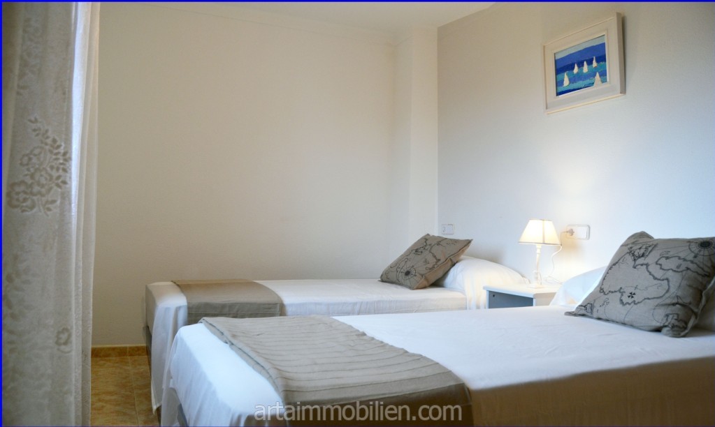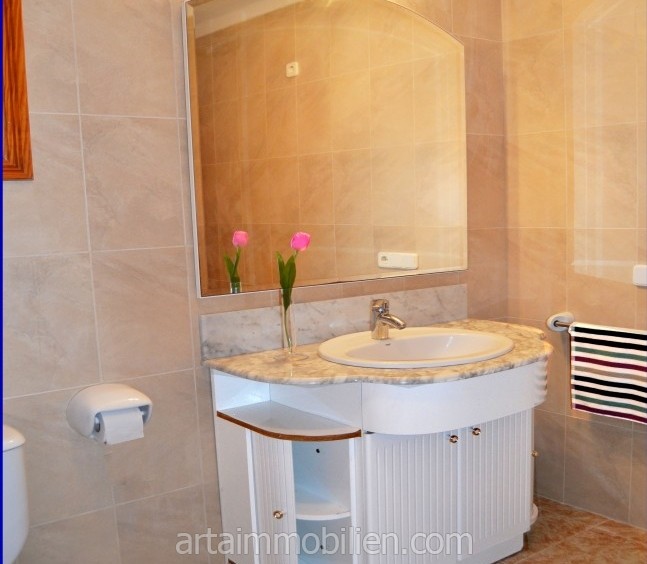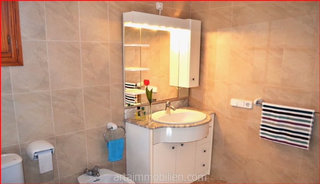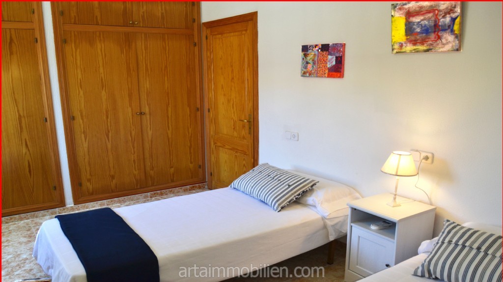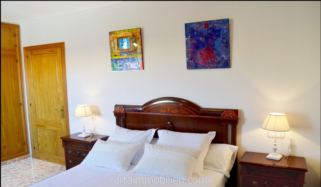 En la primera planta se encuentran dos dormitorios dobles con armarios empotrados, el dormitorio principal con salita y balcón con fantásticas vistas al mar y un cuarto de baño completo con bañera.