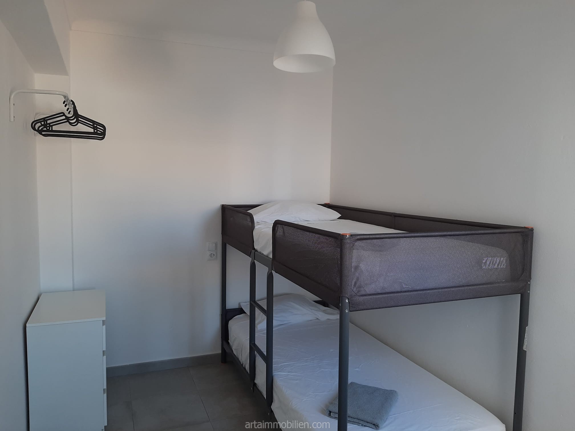 Consta de una amplia sala de estar-comedor con acceso a un balcón, una cocina abierta totalmente equipada, dos dormitorios dobles con armarios empotrados, un dormitorio individual y un cuarto de baño completo con plato de ducha.