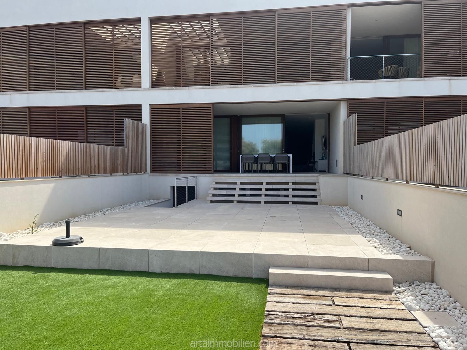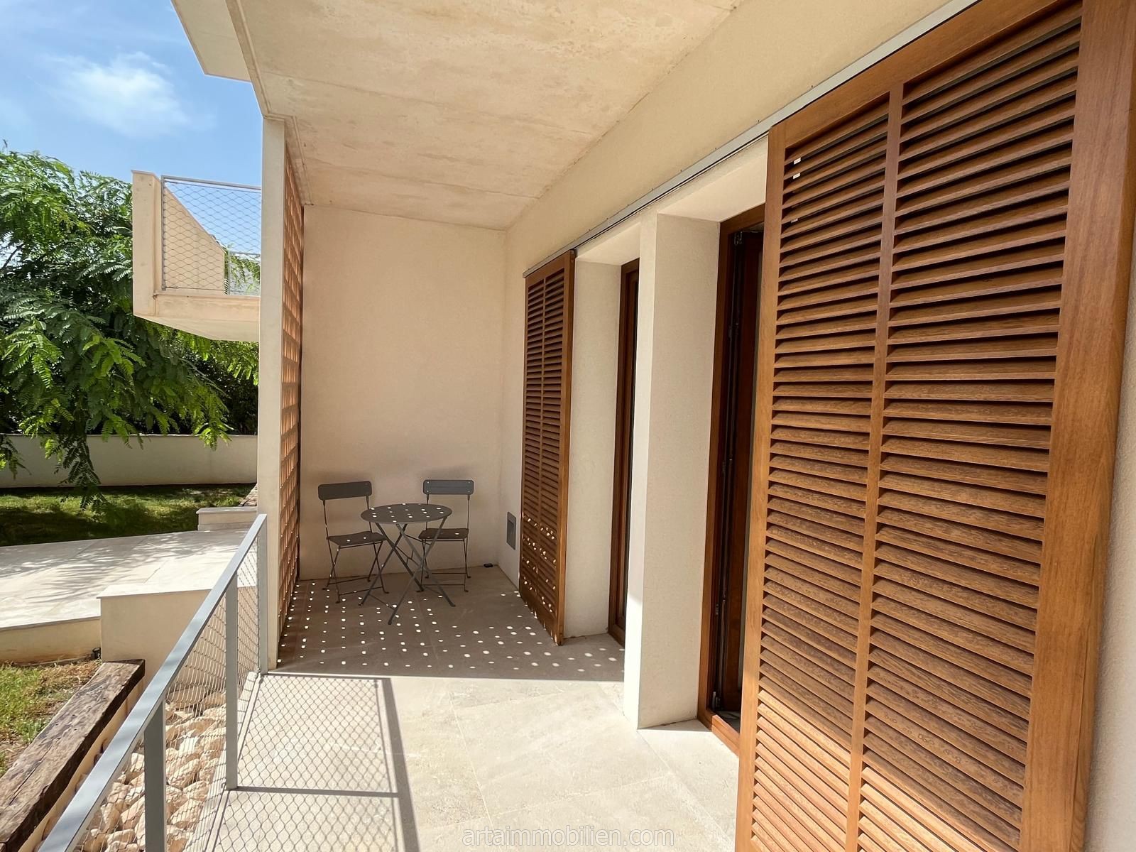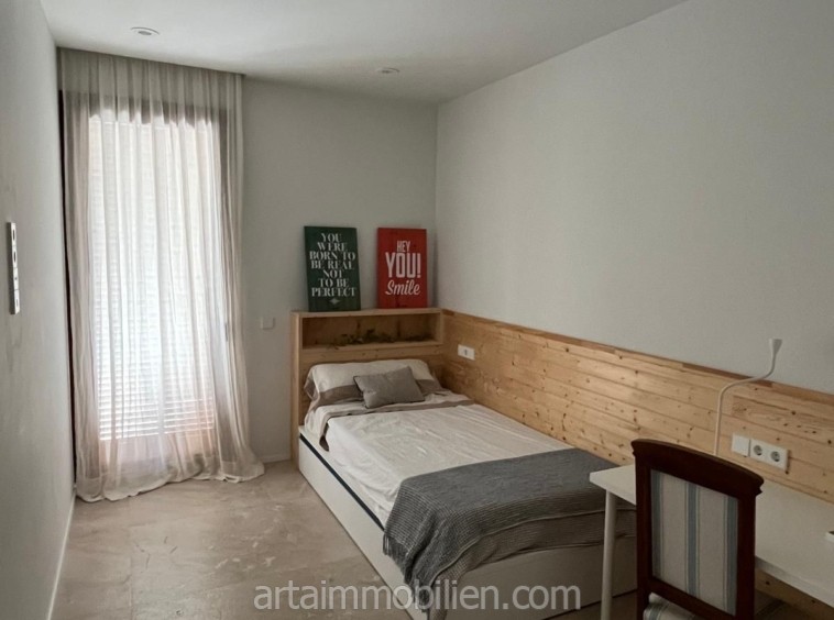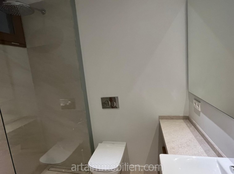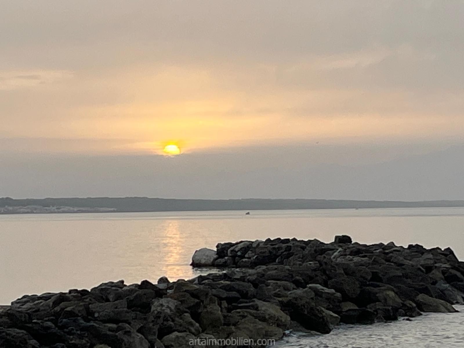 Una sala de estar con chimenea y cocina y comedor abiertos contiguos. Una terraza con vistas al mar en el lado del mar y un balcón en el otro lado y un patio completan este maravilloso apartamento.