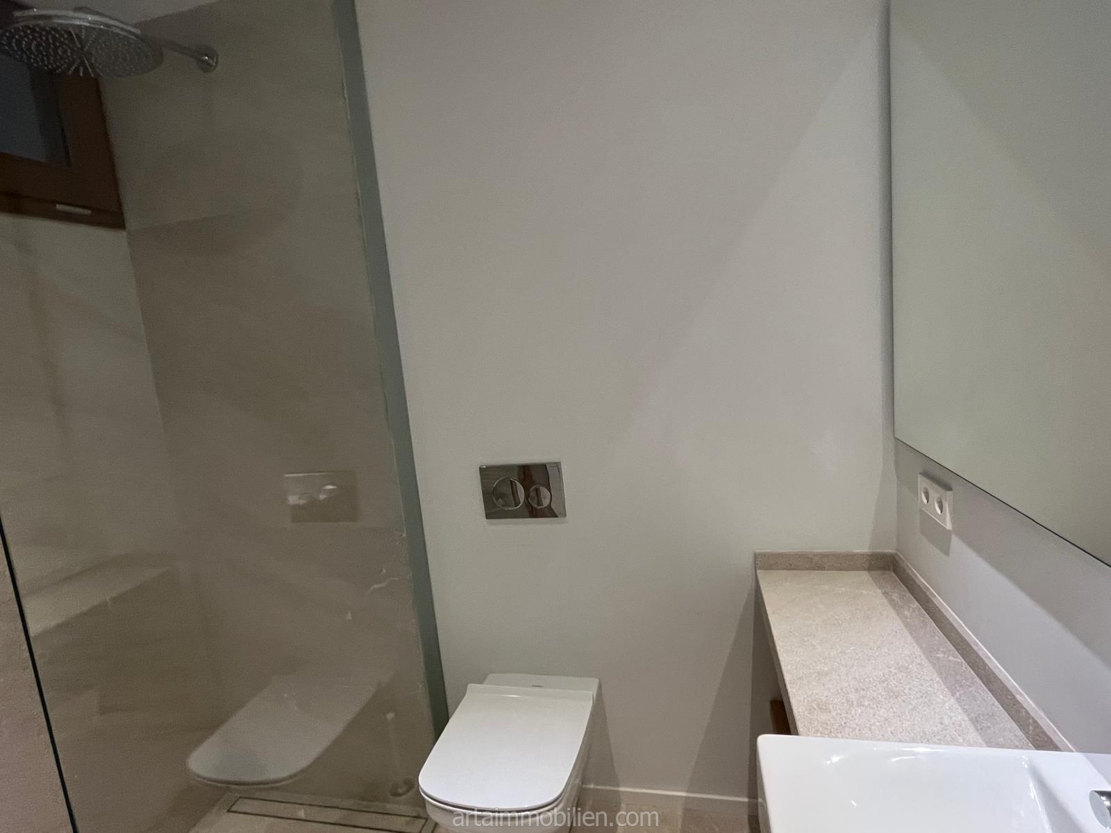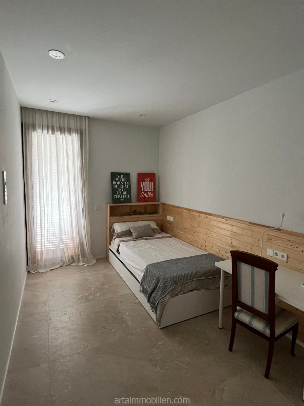 El apartamento tiene tres dormitorios y dos baños, uno de ellos en suite.